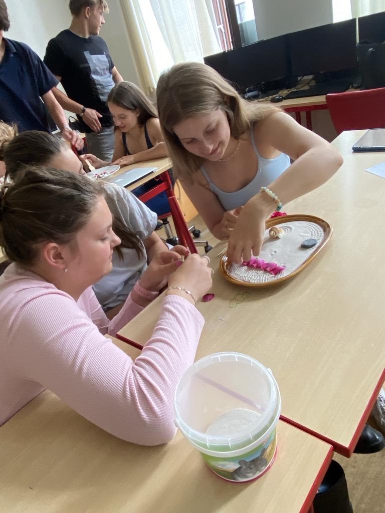 Při poslední hodině ZSV1 tvořili studenti septimy a třetího ročníku mini zenové zahrádky. Tato aktivita byla ještě praktickým doplněním učiva o buddhismu, kterým se během druhého pololetí kromě jiného také zabývali. Zenové zahrady všech velikostí slouží tradičně k relaxaci a meditaci. Podívejte se, jaké mini oázy klidu a krásy studenti během chvilky vykouzlili.