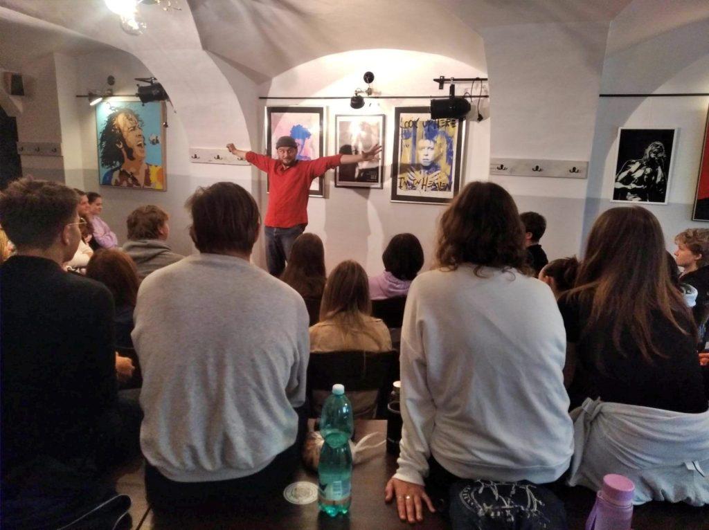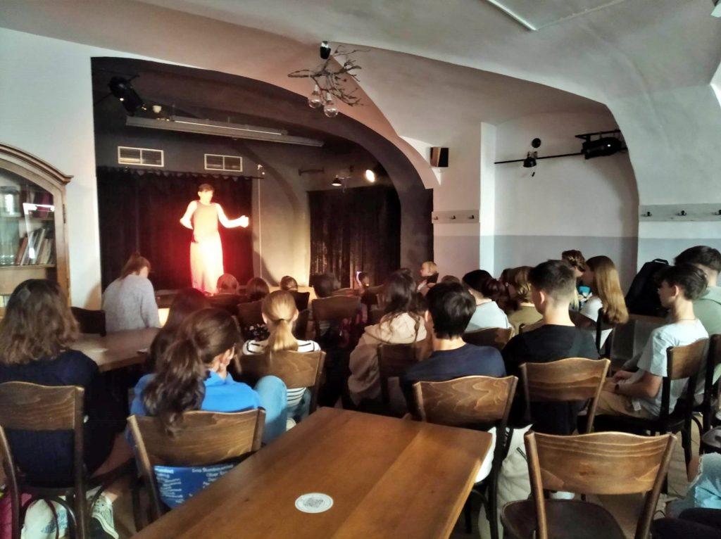 Studenti vyššího gymnázia se o storytellingu leccos dozvěděli na vypravěčském festivalu Kolotoč příběhů (12. - 13. 10. 2023). Vyslechli si příběhy Michaely Piskačové a Martina Haka a sami se teď v hodinách rodného jazyka pokoušejí vyprávět mýty a pohádky podobně strhujícím způsobem.
