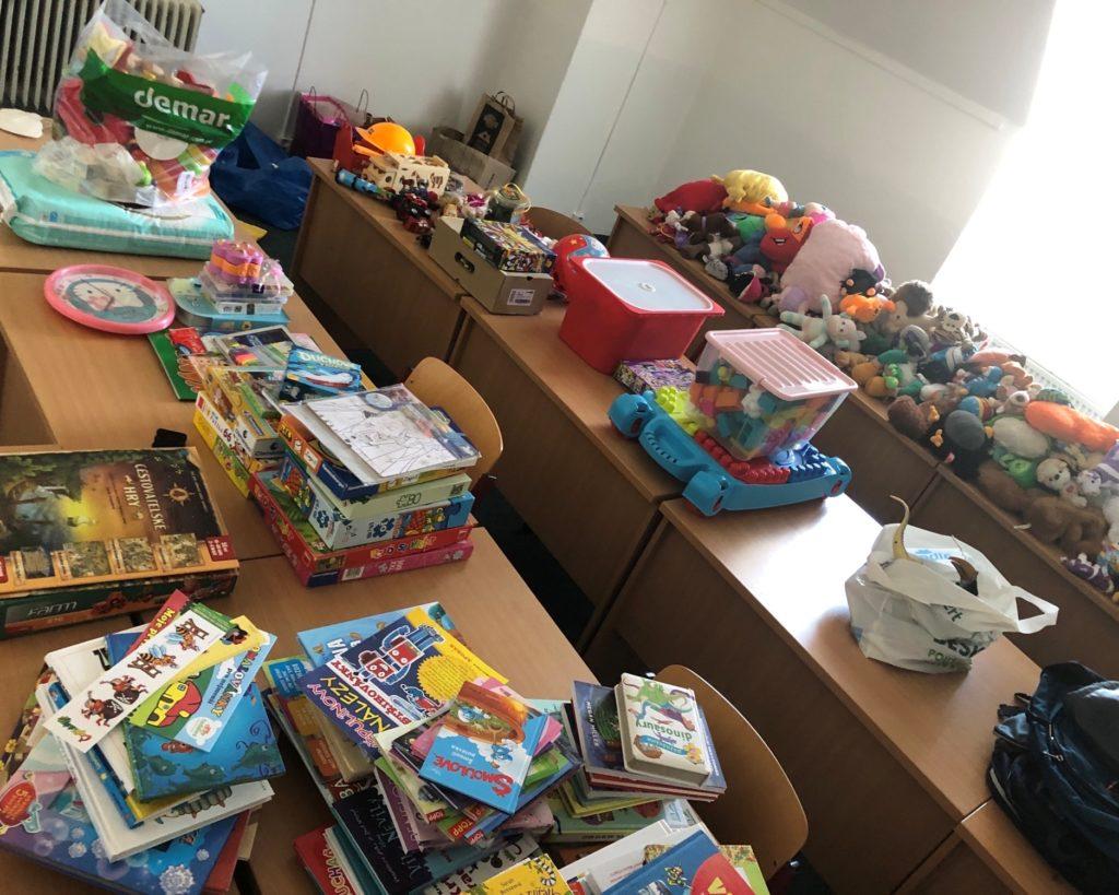 Jak je vidět na fotografiích, studenti školy z domova donesli celou řadu dárečků.