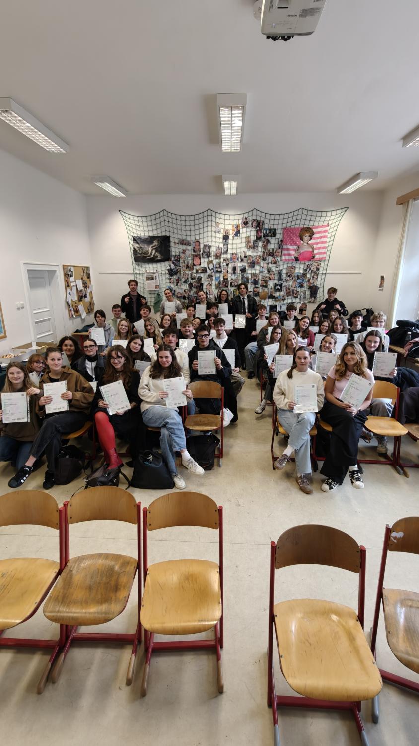Jsme nadšení z vysoké úspěšnosti: všech 50 maturantů a maturantek získalo alespoň jeden jazykový certifikát! Sedm z nich úspěšně složilo mezinárodní certifikáty z němčiny i angličtiny na úrovni B2–C1. Jedná se o: Ludmilu Kozlovou, Veroniku Janouškovou, Jana Kofla, Milana Schořovského, Emu Novákovou, Annu Strouhovou a Veroniku Šimkovou.