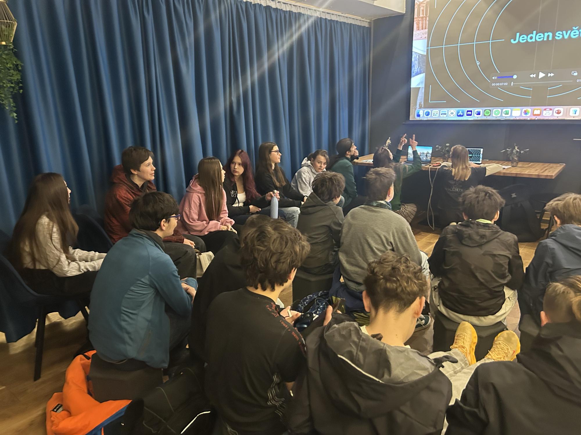 S kvintou jsme navštívili promítání filmu Kuba a Aljaška promítaného v rámci projektu Jeden svět. Film si studenti vybrali sami, a vybrali dobře. Příběh dvou dívek, které sloužily jako medičky na ukrajinské frontě neukazoval pouze válečné dění, ale sledoval život hlavních protagonistek i ve chvíli, kdy nenasazovaly životy v první linii, ale skládaly třeba zkoušky z angličtiny nebo navrhovaly modely na módní přehlídku v Paříži. Promítání proběhlo v kavárně biografu Kotva, což byla z mého pohledu výhra. Projekce pouze pro jednu třídu. Po shlédnutí filmu následovala diskuze pro jeden kolektiv, každý může být vtažen do debaty o filmu, otázky i odpovědi jsou adresné, všechno je mnohem osobnější, otevřenější a přirozenější než ve velkém sále. A je třeba říct, že kvintáni chtěli o filmu mluvit, chtěli ho promyslet a pochopit. Za to jim patří veliká pochvala.