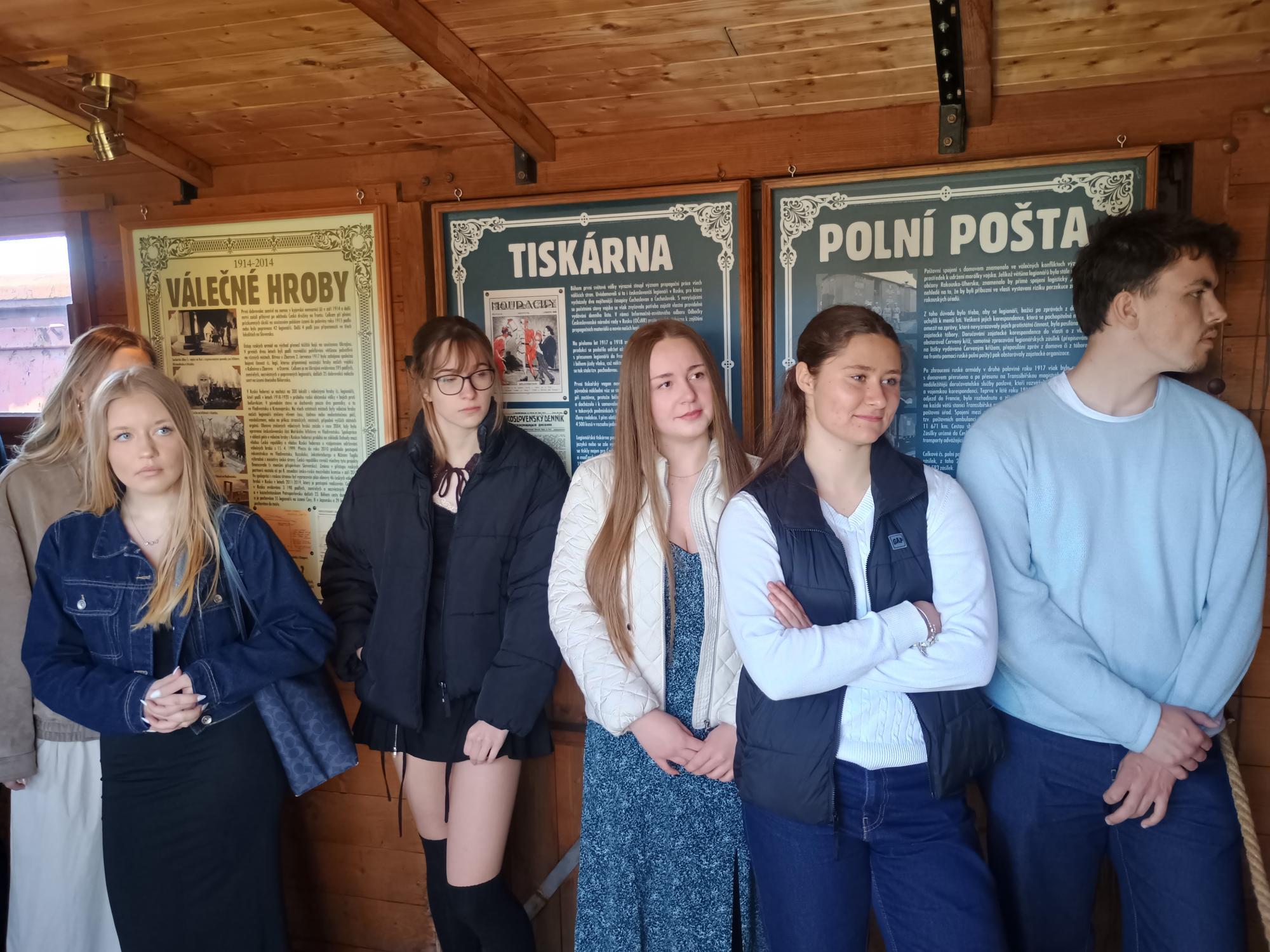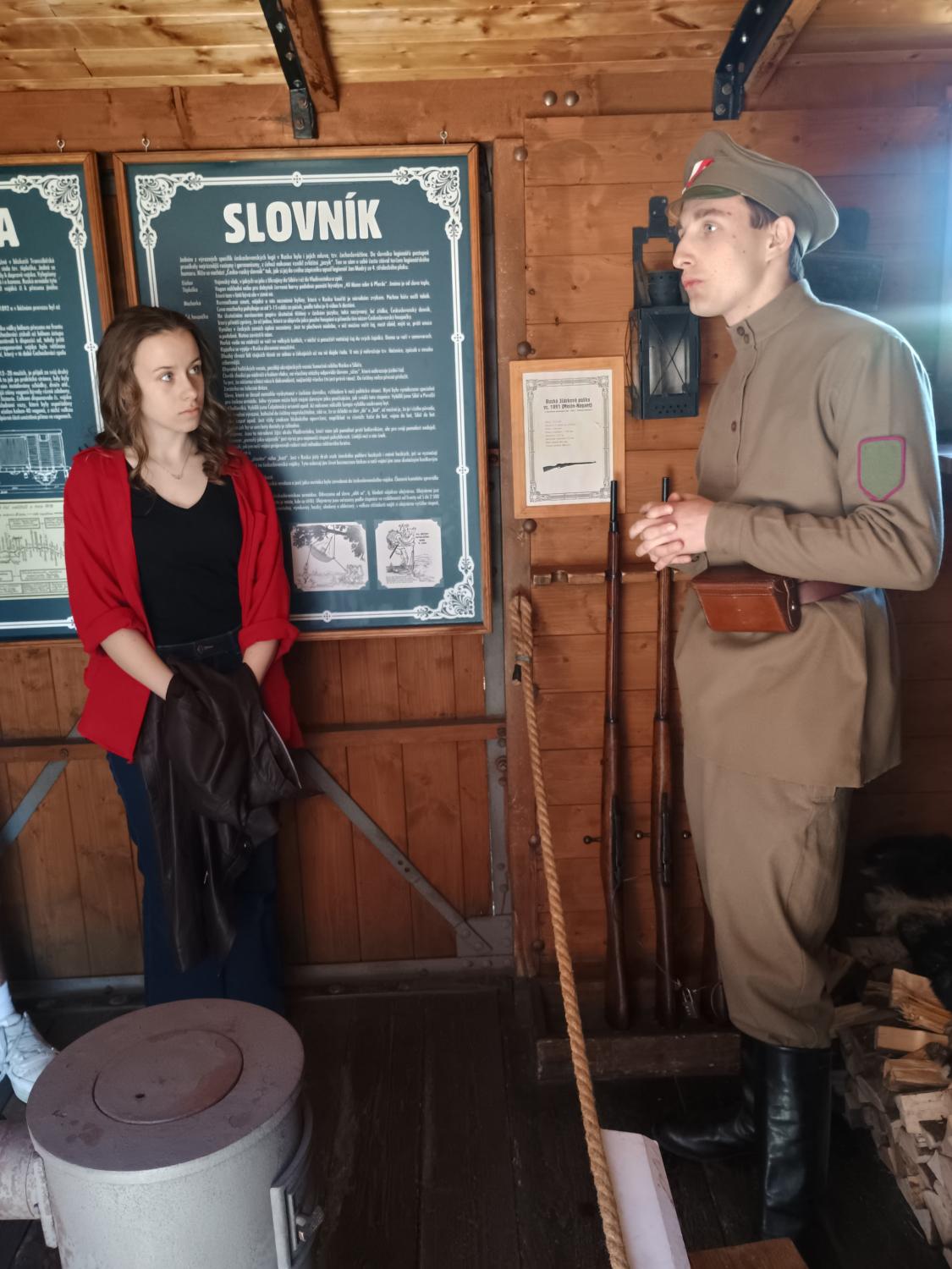 Tahle pojízdná výstava o československých legiích je zábava. Pokaždé nás provází jiný „bratr legionář“, pochopitelně uniformovaný a samozřejmě velmi dobře informovaný. Takže nejen, že nás provede po všech 14 vagónech/replikách vlaku, ale je schopen odpovědět nám na veškeré dotazy. Těplušky, štábní, lazaretní, obrněný či důstojnický vůz, pojízdná dílna, krejčovna, plukovní prodejna, tam všude jsme byli. Věděli jste, co v čs. legiích znamenal výraz legionářská vila? Neprozradím, zajděte se podívat do legiovlaku sami. Parkuje tento a příští týden na seřazovacím nádraží. Jenom budete muset oželet průvodce, ten je vyhrazený pouze pro školní skupiny. A nejnovější, nejvtipnější informace celé návštěvy: legionáři si s sebou vozili celý zvěřinec, ale třicítka medvědů, z nichž některé se podařilo propašovat až do Československa, a ještě ke všemu je darem dostal T. G. Masaryk, který je vypustil do příkopu Pražského hradu, to je zpráva dne. Půjdeme i s dalšími třídami, tak se těším.